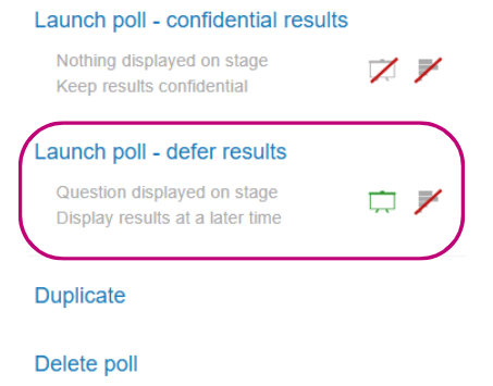 - To launch the survey with delayed results, click on Launch poll – defer results.